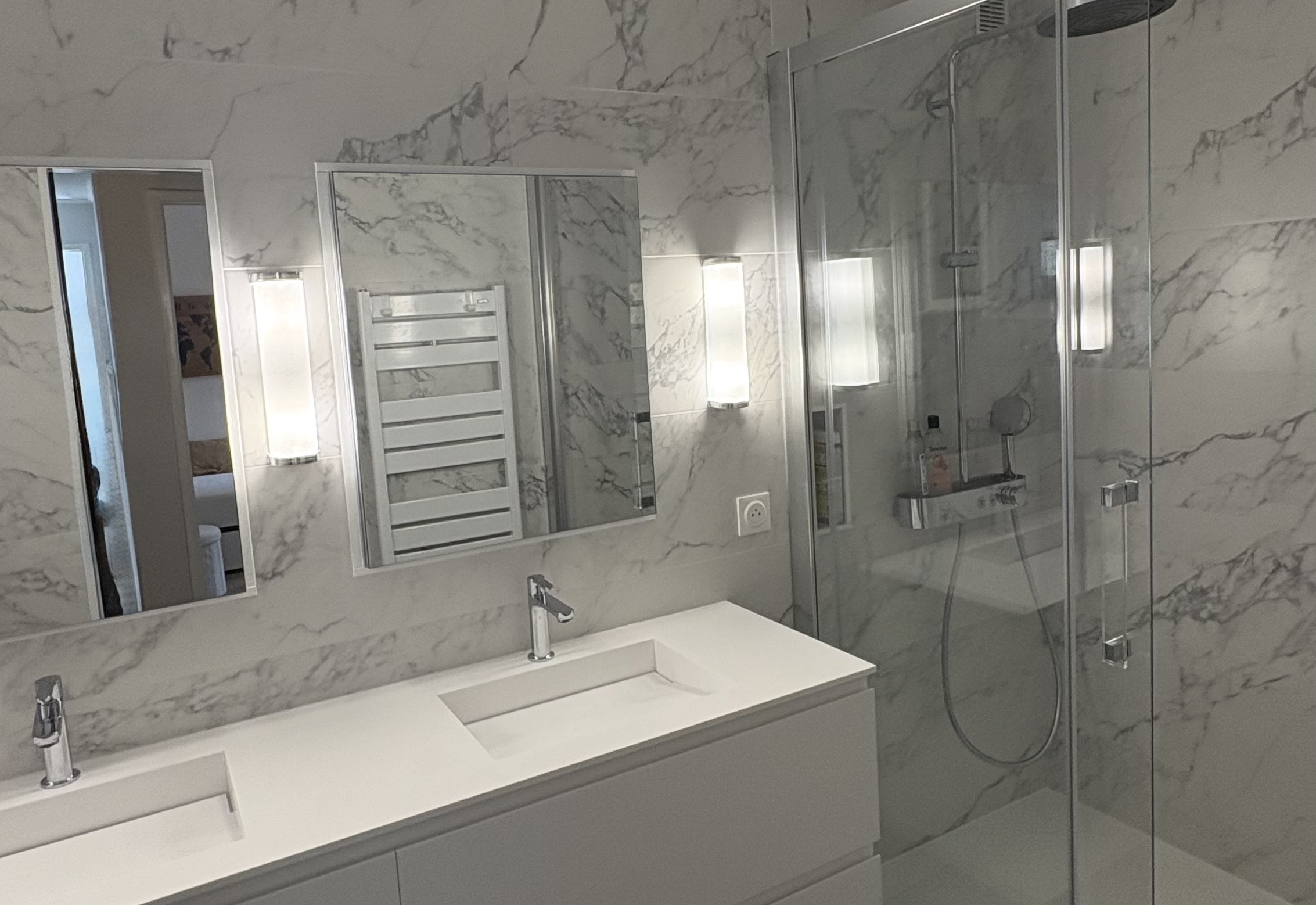 Nous utilisons des matériaux professionnels et durables, adaptés à chaque pièce et aux contraintes spécifiques (humidité, usage quotidien, résistance à l’eau), et nous vous proposons des solutions sur mesure pour harmoniser l’ensemble de votre intérieur.