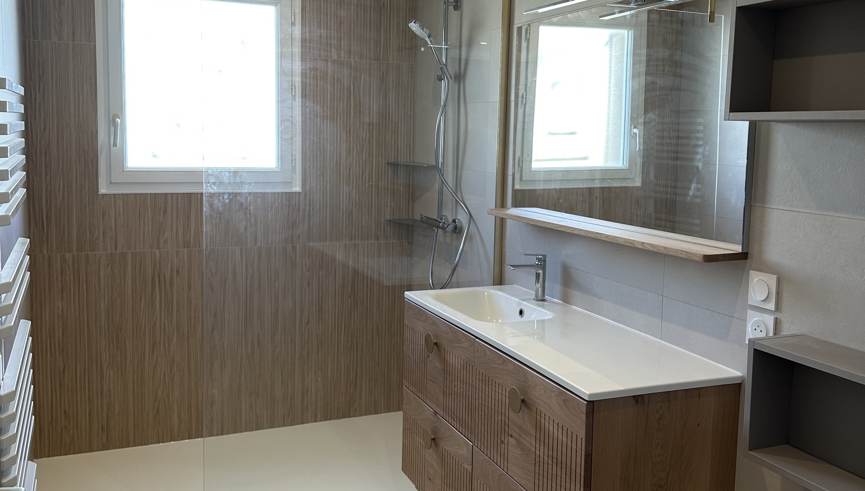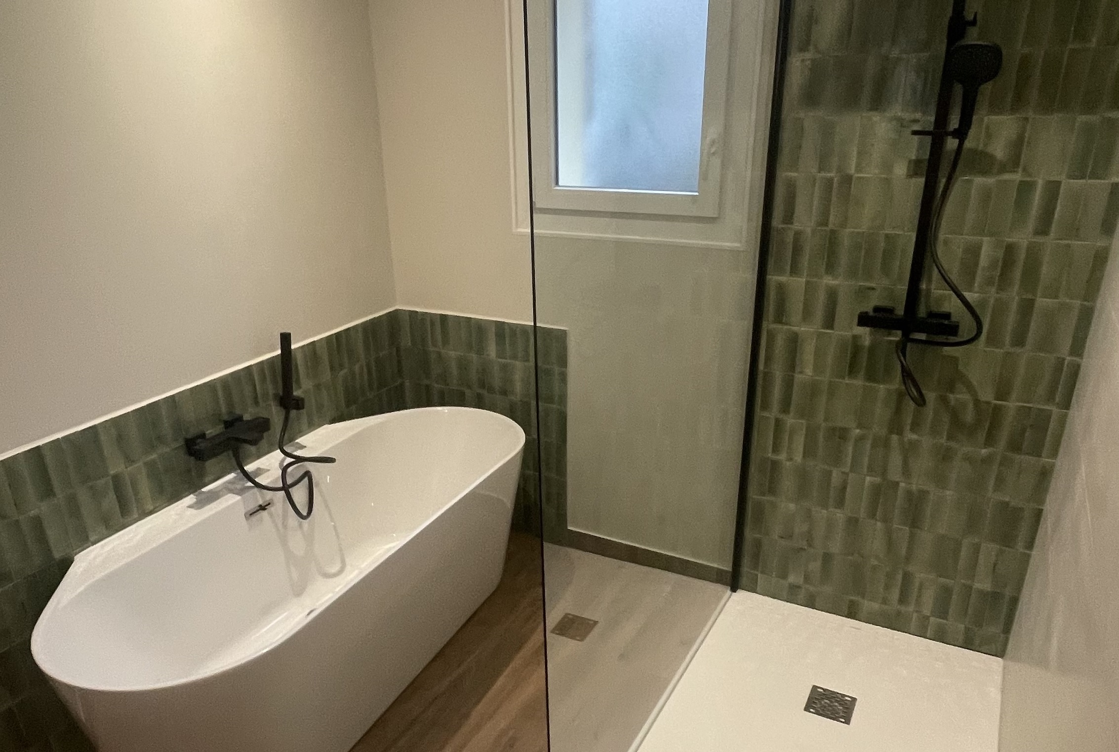 - Salle de bain moderne : transformation de baignoire en bac à douche, pour gagner de l’espace et améliorer le confort.